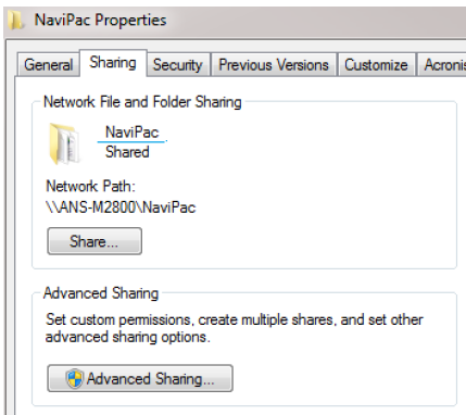 Note: Don’t use Advanced Sharing... to change the NaviPac folder name. |