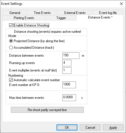 It is also important to consider the distance between points versus the speed, and as a rule of thumb you need more than 3 cycles between each shot. E.g. 6.25 meter and speed of 3 knots will be around 4 seconds between shot – which is just feasible. If not – then one way is to set NaviPac cycle time to e.g. 0.5 seconds.