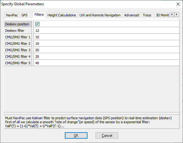 - Go to NaviPac / Options / Global parameters / Filters, tick Deskew position.