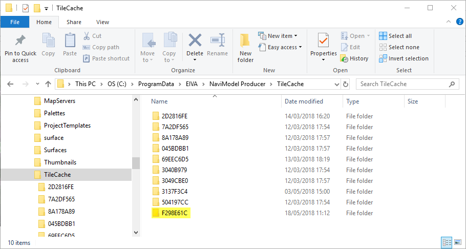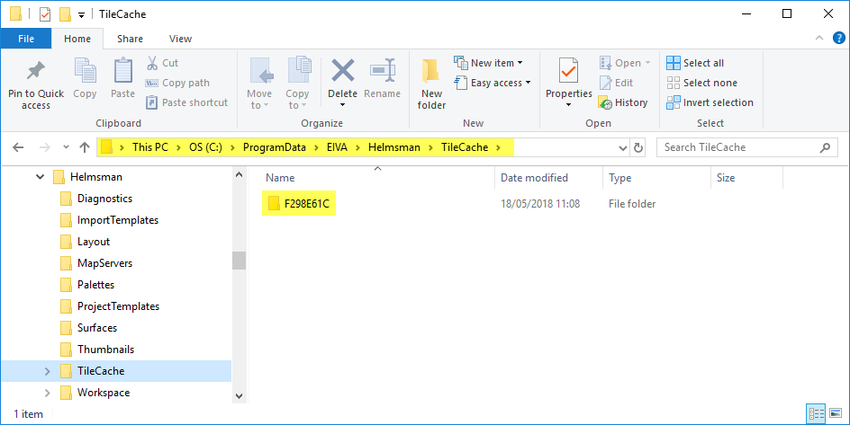 - Copy the F298E61C folder into the Tile Cache folder, eg C:\ProgramData\EIVA\...Software name...\TileCache, e.g;