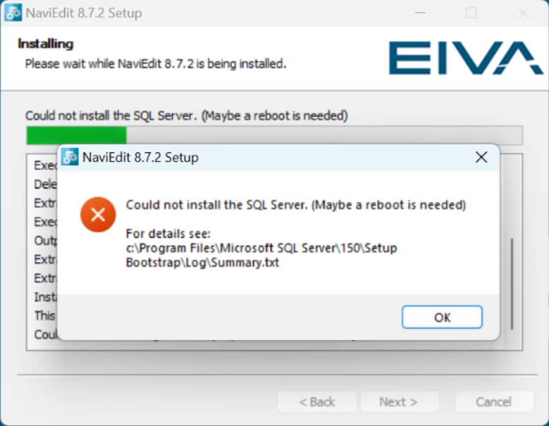 When installing NaviEdit on a new computer running Windows 11 the following error message appears on the screen.