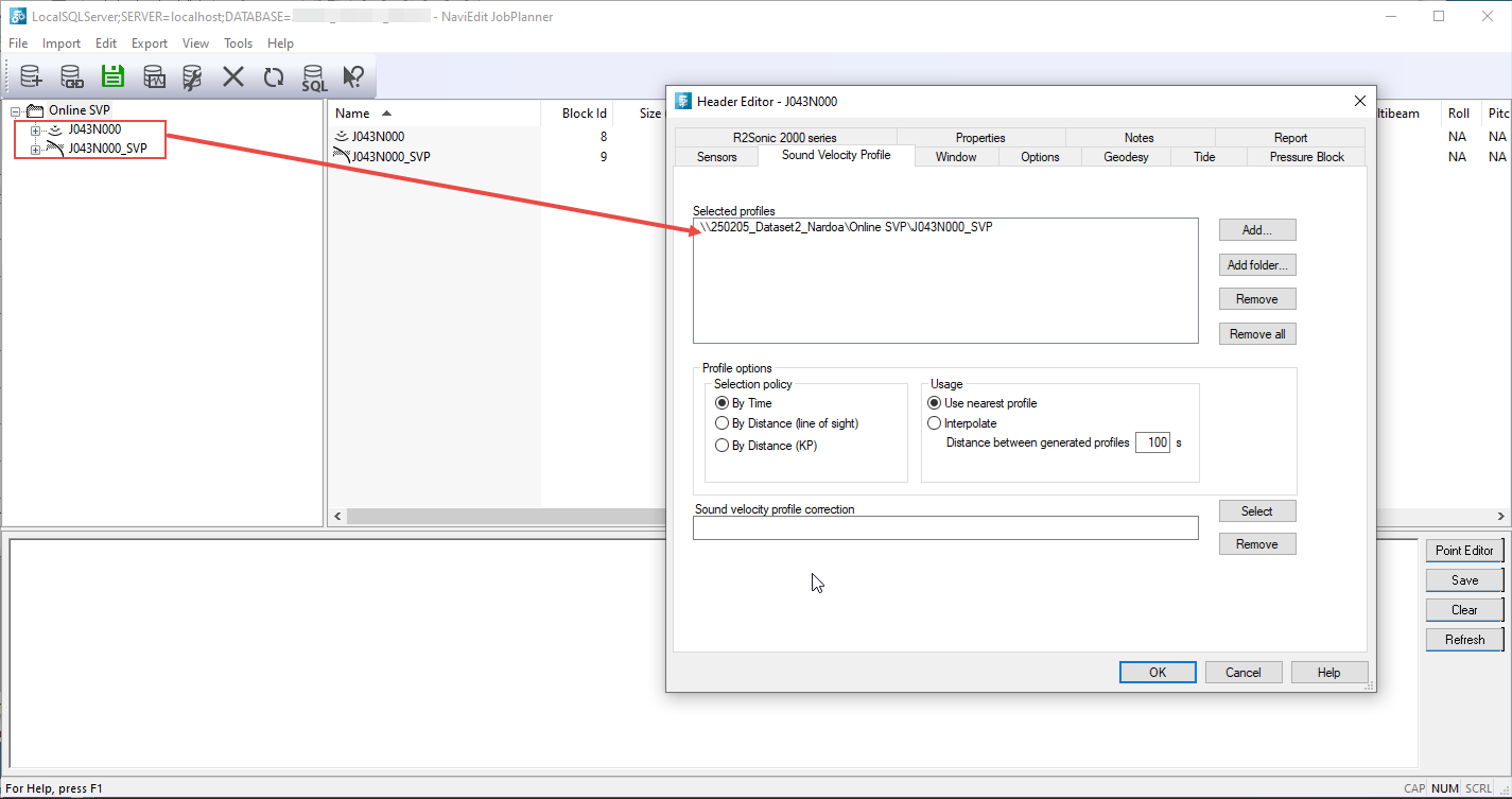 A: In NaviScan Online you can add a sound velocity profile to be used for visualizing the data corrected for refraction as follows: