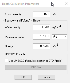 NaviPac Online - Options - Depth Calculation Parameters - Pressure at surface.
