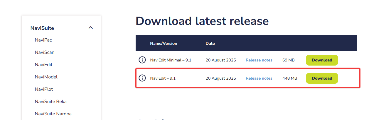 Figure 1 - NaviEdit full installer (has the SQL installer embedded) on the download site: https://download.eiva.com