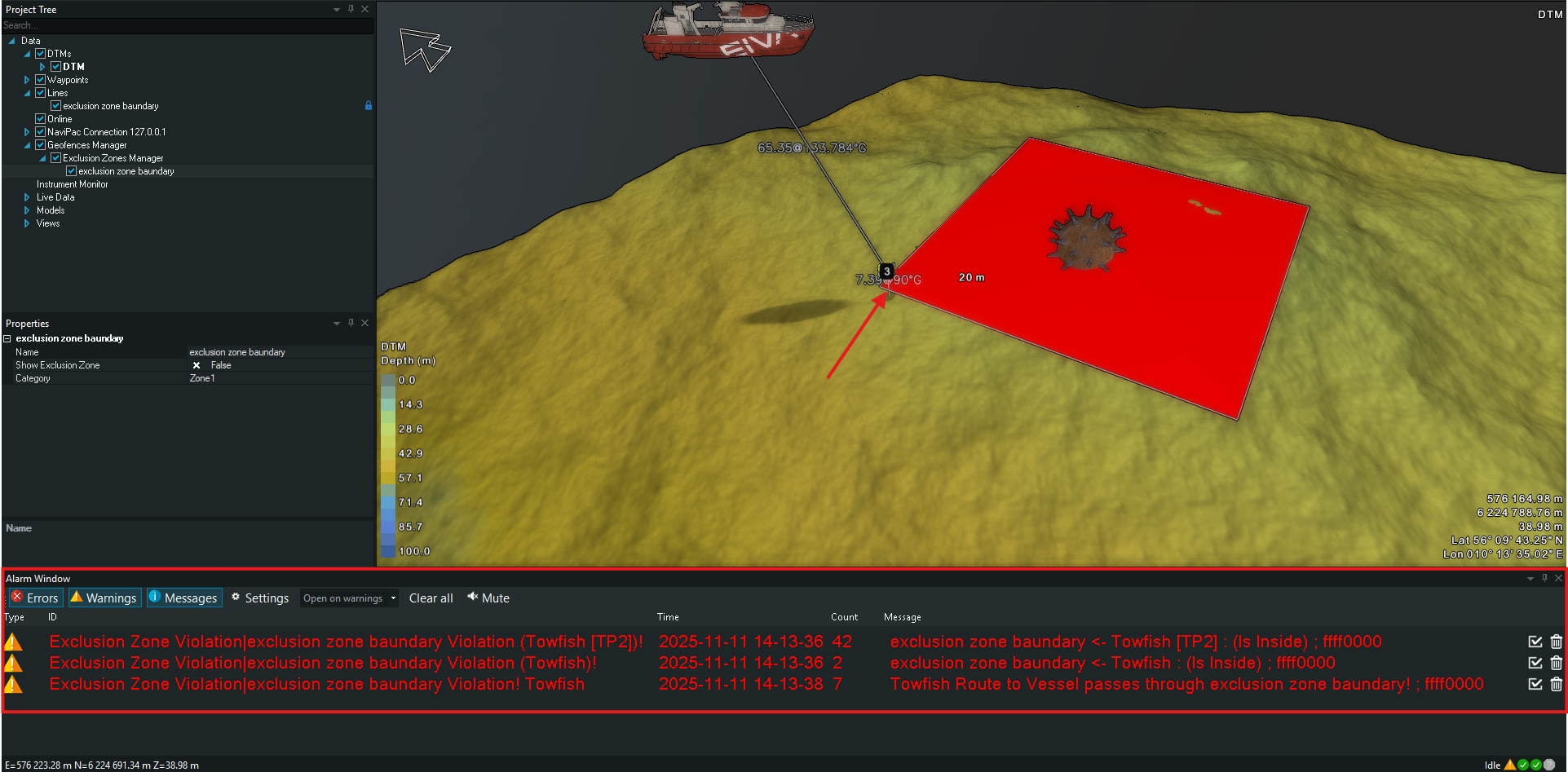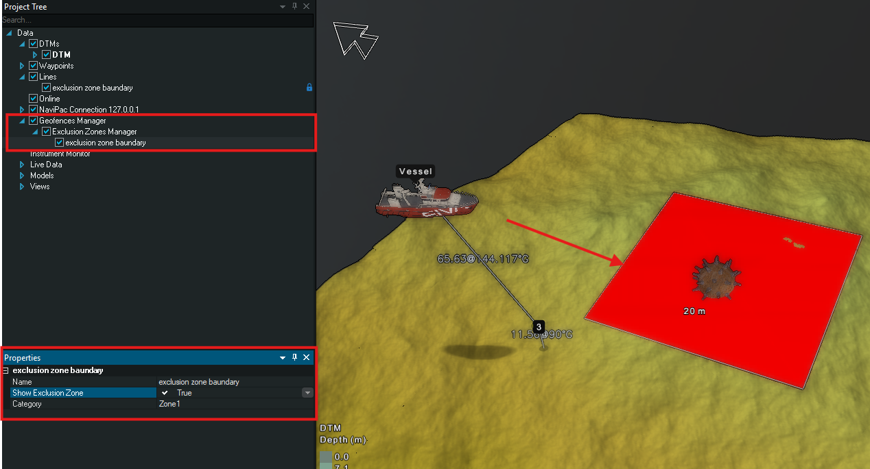 After pressing OK, in the Project tree a new node called Geofences Manager appears and under it the newly exclusion zone created (Figure 3). Geofences Manager is including both exclusion zones and confinement zones properties to learn more about Geofences Manager please visit this guide:https://eiva.freshdesk.com/a/solutions/articles/43000772217