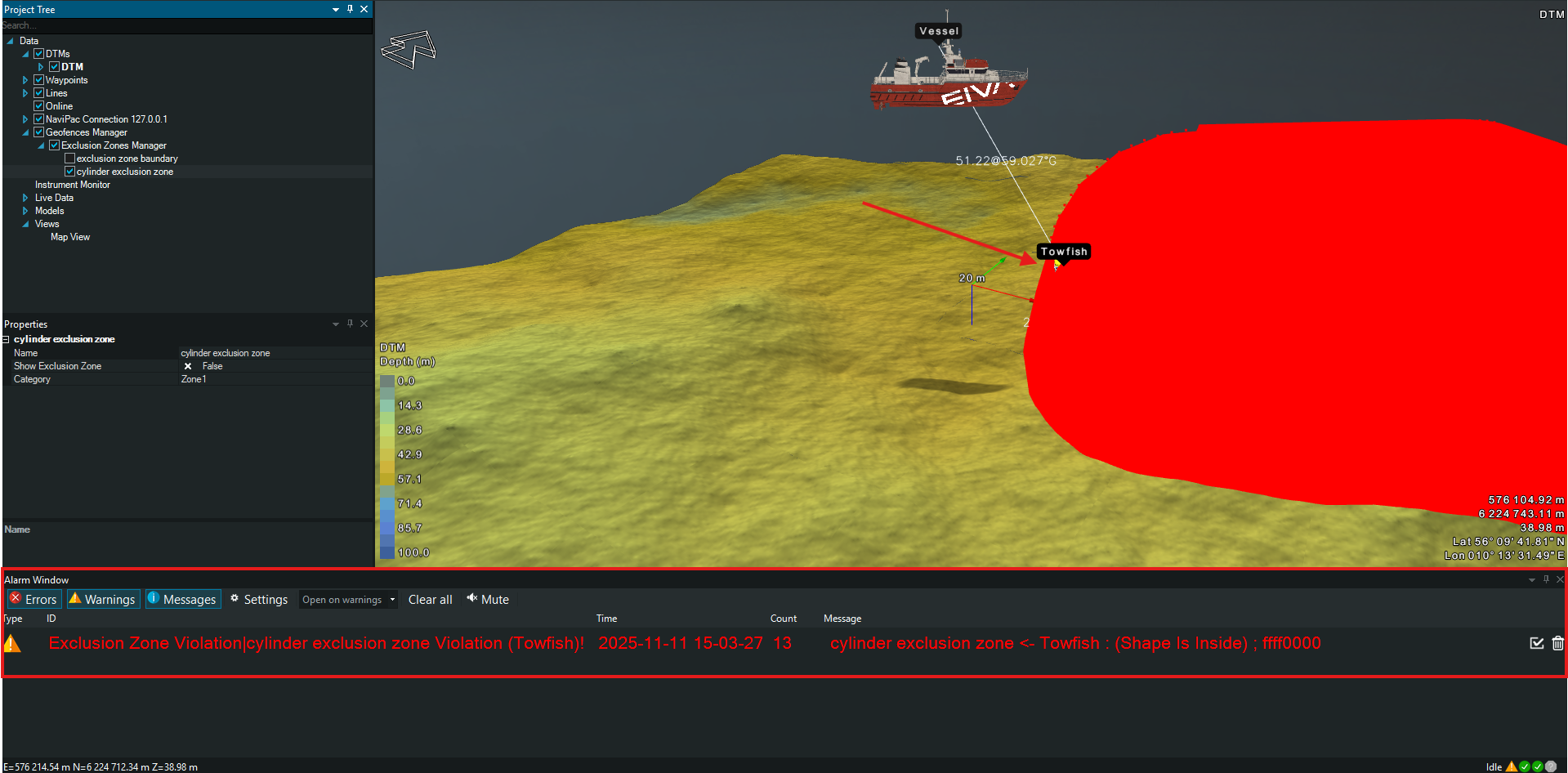 If a boundary as a cylinder was created and a vehicle enters it a warning will appear on the screen and the cylinder will turn solid red (Figure 5)