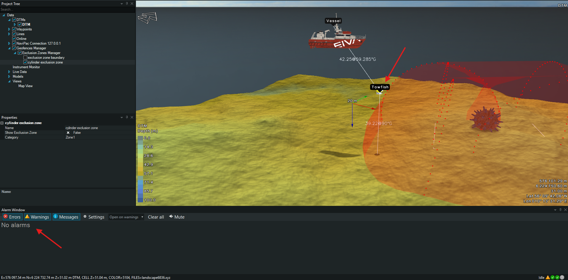 If a vehicle as a cylinder was created and a vehicle is above it, no warning messages will appear on the screen (Figure 6)