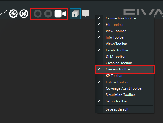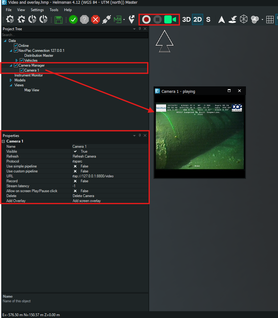 A: In Helmsman 4.12 the feature to add a camera to the project has been changed. The Camera Manager and camera is now added via the Camera toolbar (Figure 1)