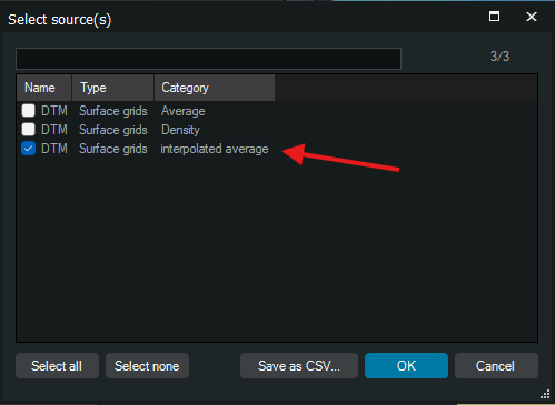 This tool adds the interpolation to the DTM and when exporting the DTM the infills will be included as well. Using the other methods of interpolation will require the selection of the interpolated surface to be selected first (Figure 4).