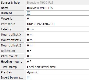 Open NaviScan config and add a new Sidescan/Forward-looking Sonar > Blueview M900 FLS > UDP: sensor IP and port is 0.