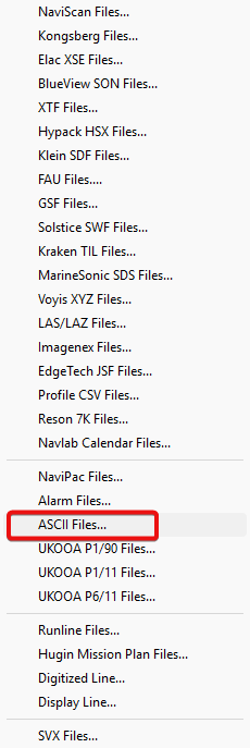 For those files that the user must manually import the sound velocity profile or profiles the ASCII importer must be used. In the NaviEdit Job planner - Import select ASCII files.