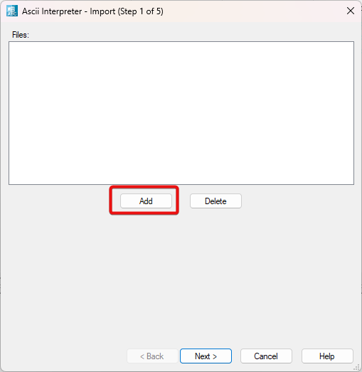 ASCII importer window is opening and the files can be added by pressing the Add button or by simply drag and drop the files in the white section.