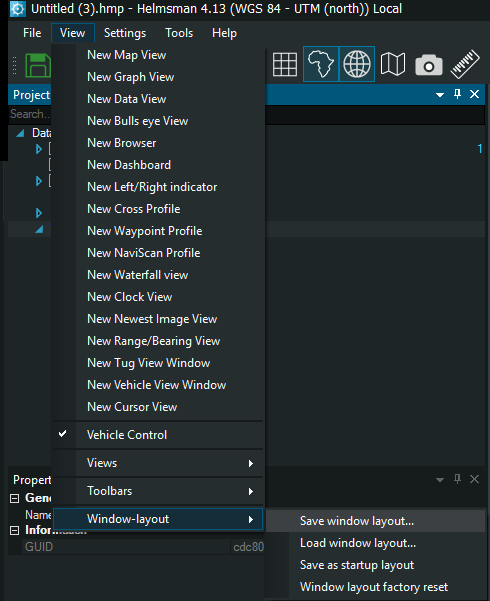 Save as startup layout - defines the current window layout as the default configuration that Helmsman will load automatically when the software starts. After setting this option, everytime Helmsman is launched, the interface will open with the same window arrangement.