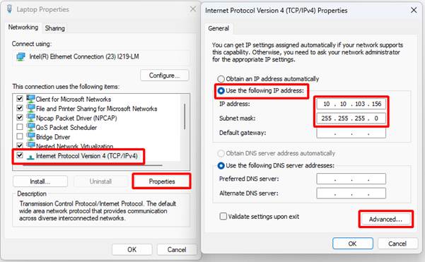 - Leave Default Gateway and DNS fields empty unless otherwise specified
