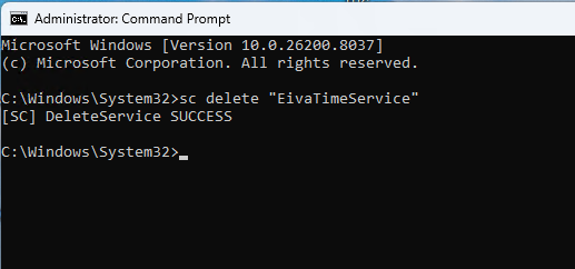 sc delete "EivaMaster"sc delete "EivaRemote"sc delete "EivaTimeService"